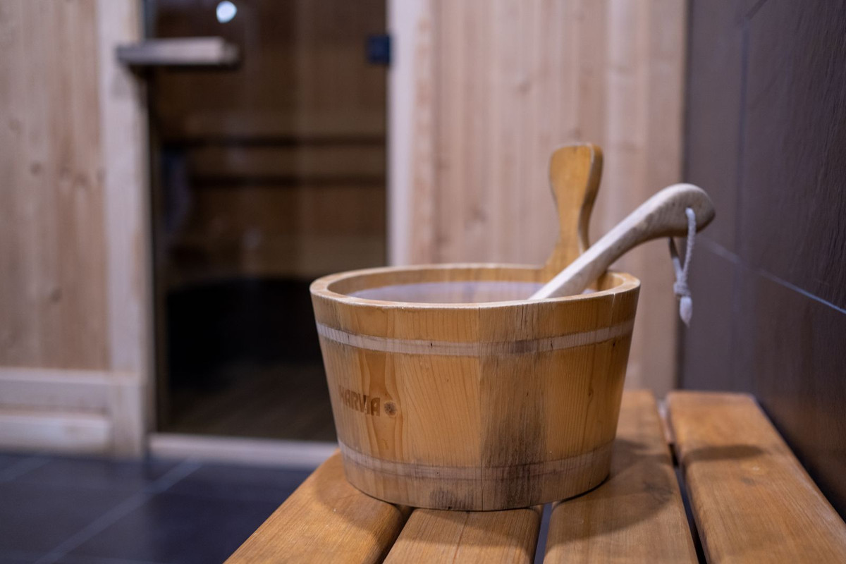 Espace spa comprenant une piscine intérieure chauffée, un sauna et un jacuzzi relaxant.