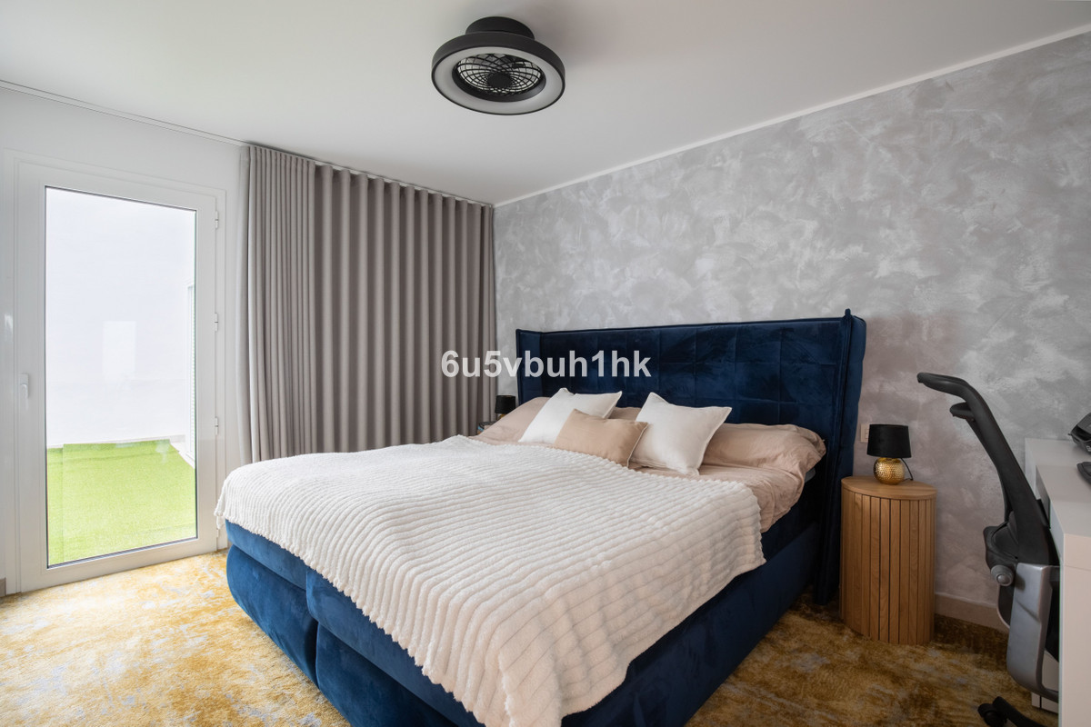 Le niveau inférieur offre un atout rare pour les appartements espagnols : un vaste hall d’entrée accueillant qui renforce l’impression d’être chez soi. On y trouve trois chambres lumineuses et spacieuses. La chambre principale dispose d’une salle de douche attenante et d’un accès direct à un patio privé clos – un espace polyvalent idéal pour un sauna, une salle de sport ou un coin détente ombragé. Les deux autres chambres bénéficient également d’une vue sur la mer et partagent une salle de douche moderne.