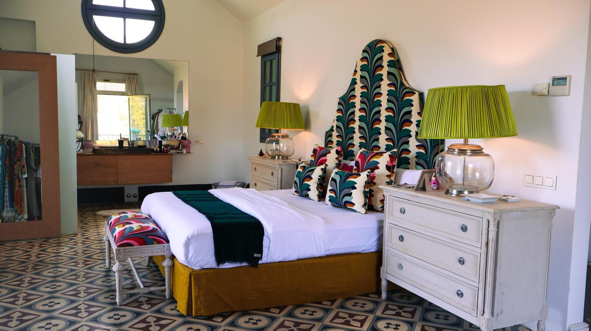Southwest facing villa with lots of character situated in an excellent location with heated pool, marble fountain highlighted with columns in the centre of the garden and hydraulic floors throughout at approximately 3kms from the beach and 6kms from Puerto Banus.