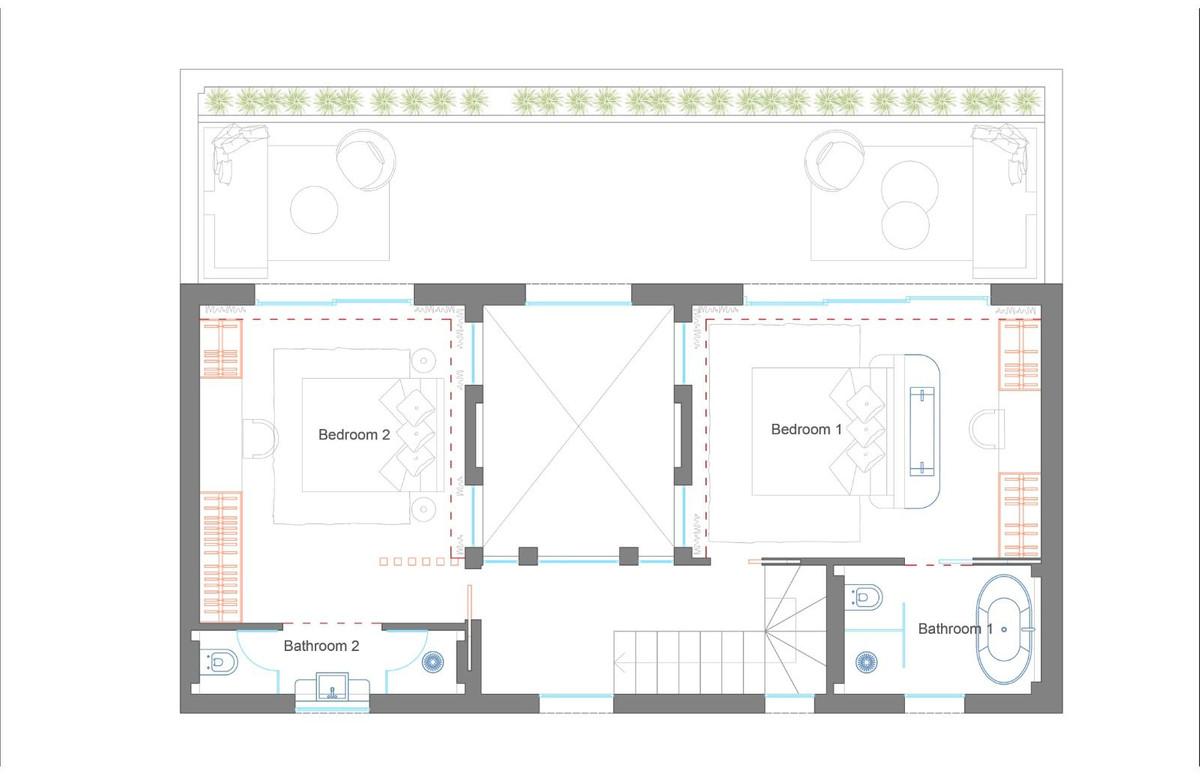 L'espace extérieur est conçu à la fois pour la détente et les réceptions, avec un jardin privé, une piscine chauffée avec couverture électrique, un jacuzzi pour six personnes, une douche extérieure et une pergola avec cuisine extérieure et espace barbecue.
