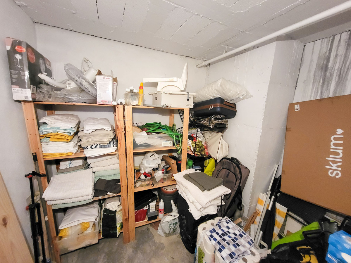 Le séjour/salle à manger, lumineux et spacieux, donne directement sur une grande terrasse offrant une vue dégagée et une vue sur la mer. On y trouve également l'escalier menant au solarium sur le toit, créant ainsi une transition harmonieuse entre l'intérieur et l'extérieur. Le bien comprend également une cuisine semi-ouverte entièrement équipée et deux chambres doubles partageant une salle de bains. Le prix inclut une place de parking privative dans le garage ainsi qu'un cellier.