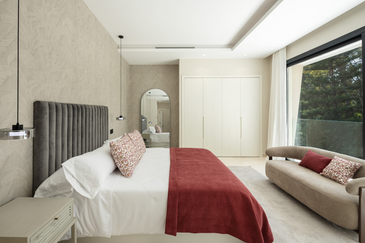 Située dans le quartier résidentiel exclusif de La Cerquilla, cette villa neuve d'exception est un modèle de luxe contemporain. Répartie sur quatre niveaux agencés avec soin, elle offre cinq chambres spacieuses et sept salles de bains élégamment aménagées. Une entrée majestueuse à double hauteur confère d'emblée une impression de grandeur, inondant la maison de lumière naturelle et donnant le ton à des intérieurs raffinés. La pièce de vie principale, agrémentée d'une cheminée élégante, s'ouvre harmonieusement sur une cuisine américaine, conçue aussi bien pour le quotidien que pour recevoir avec raffinement. La propriété bénéficie également d'un système domotique de pointe et d'un système de renouvellement d'air automatique performant, garantissant un confort optimal, une efficacité énergétique maximale et une qualité d'air irréprochable.