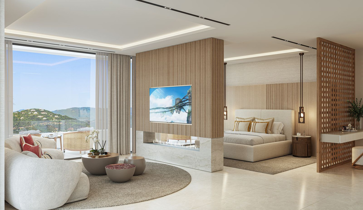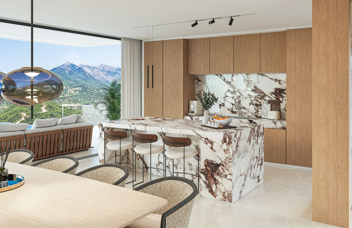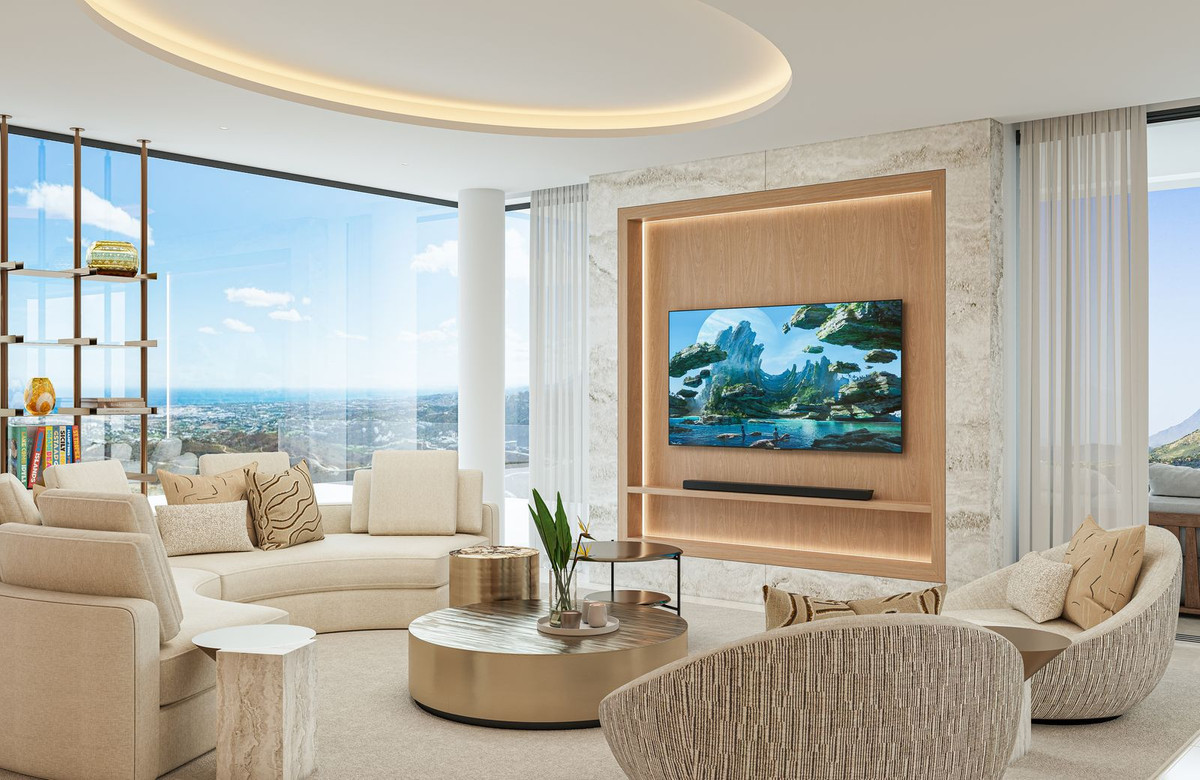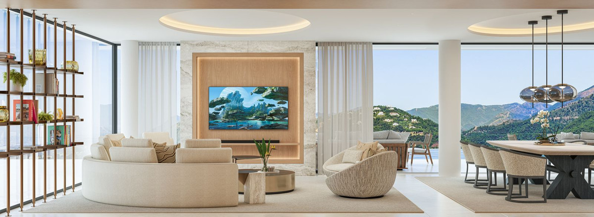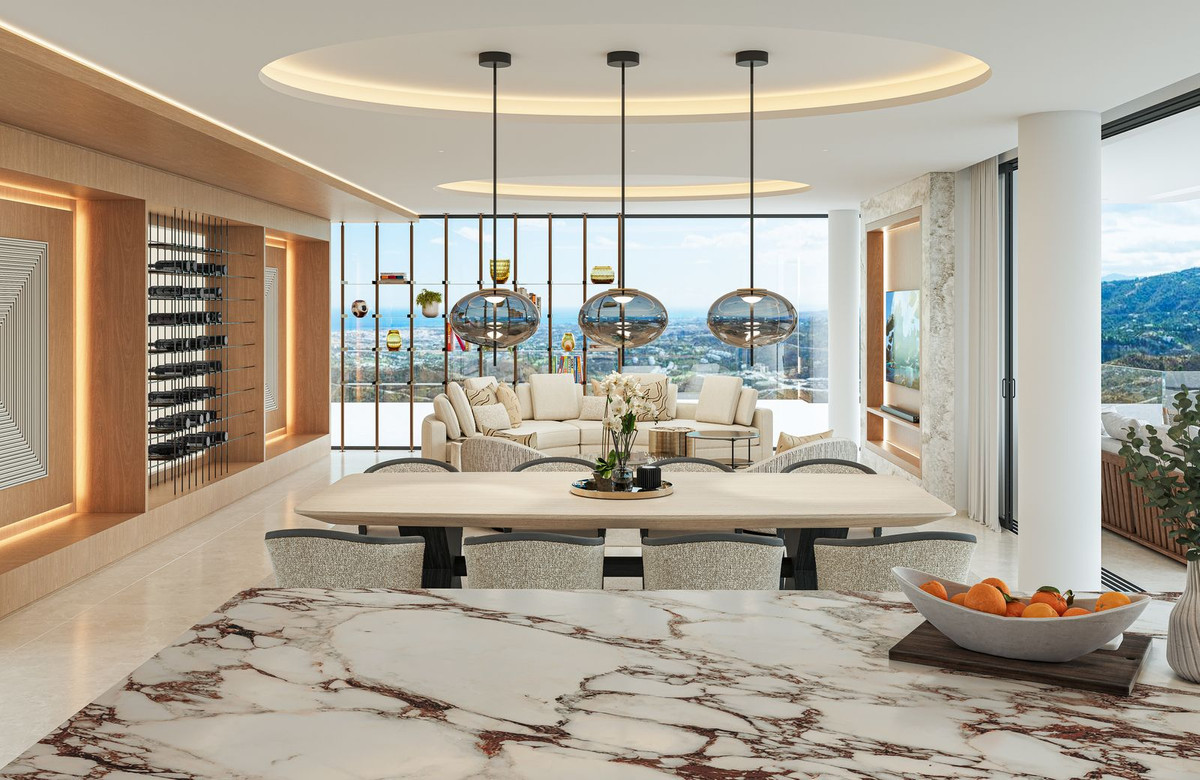 La villa Aurion bénéficie d'une double orientation exceptionnelle, à l'ouest et au sud, offrant un panorama à couper le souffle sur la montagne et la mer. De sa position dominante, elle offre une vue imprenable sur les collines environnantes et l'impressionnante chaîne de montagnes de la Sierra Bermeja, tout en surplombant le prestigieux domaine du Country Club de La Zagaleta.